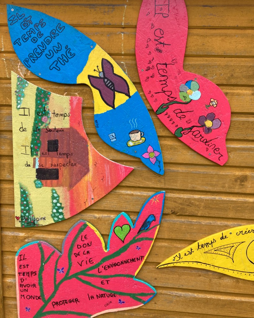Chaque pièce est unique, comme chaque personne qui y a participé. Toutes ensemble, elles crée une œuvre vivante, colorée et vibrante, à l’image du quartier. Quand les participant reviendrez dans le jardin, ils retrouveront leur création parmi celles des autres. Il sauront qu’ils ont contribué à faire revivre le lieu, à le rendre plus beau, plus accueillant. Et peut-être qu’en lisant leur phrase, quelqu’un d’autre sourira, se posera, prendra une inspiration.