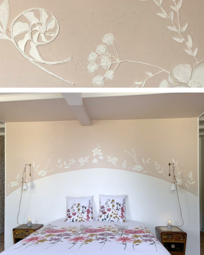 Doriane a réalisé une fresque murale en relief en guise de tête de lit dans notre chambre : nous sommes très satisfaits de son travail, cala dépasse nos espérances… très ravie 🤩… je vous recommande Doriane les yeux fermés : quel talent !!