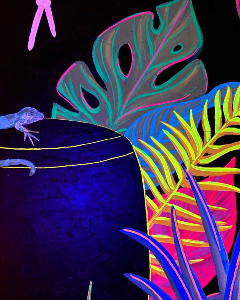 Maison Ferrand – black wall fluo Fresque La lumière noire est magique pour un effet en soirée marquant et festif! De jour : En soirée avec lampe UV : Similaire