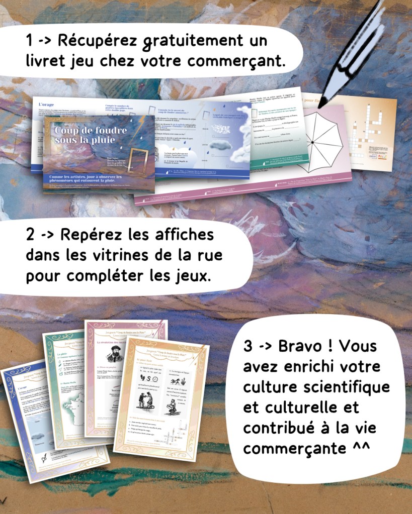 Au fil des jeux proposés, on découvre autant les phénomènes scientifiques qui entourent la pluie que des mots d’argot du Paris du 19e, des tips d’artistes pour représenter la pluie ou encore l’existence d’une école pas comme les autres en Bretagne.