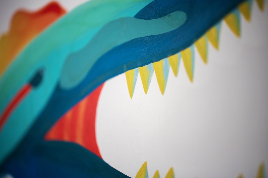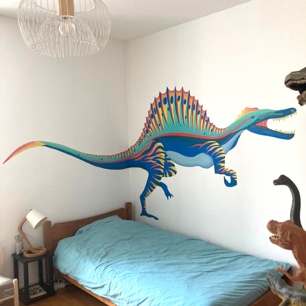Mais comment ils étaient vraiment les spinosaures ? Pas de preuves de couleurs alors je me suis amusée pour rendre un dinosaure carnivore sympathique et coloré 😉