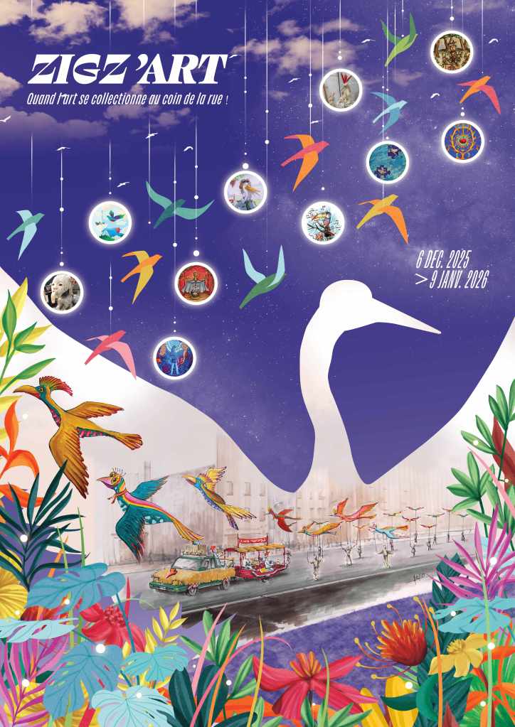 Création d’une affiche-jeu dans le cadre d’un projet sur-mesure delartetdesjeux.fr. Une affiche souvenir de la Parade des oiseaux (événement du 6 décembre 2025) qui permet la (re)découverte ludique d’artistes locaux de La Ferme pédagogique du spectacle qui expose dans les vitrines des commerces en cette fin d’année 2025.